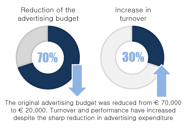 - Reduced advertising expenditure: Reduced from €70,000 to €20,000 per month